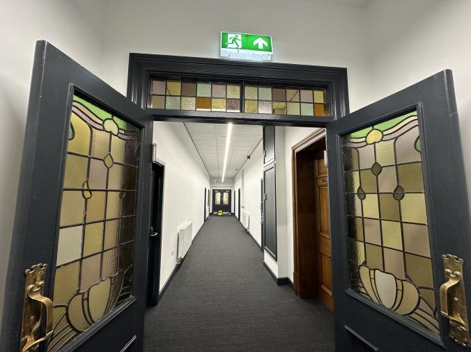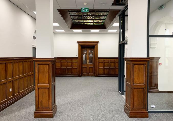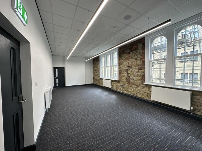 This historic, Grade II listed building was originally the old Halifax Magistrates Court. Built in 1898, the structure showcases an Early Renaissance style with Ashlar stone and slate roofs. The building provides accomodation over three floors and has undergone refurbishment to offer space, while preserving the buildings character. The main court room has been preserved to offer a large open floor area and it now contains conference rooms and rooms used for meetings. The property has on-site parking at the rear available on an individual lease basis.